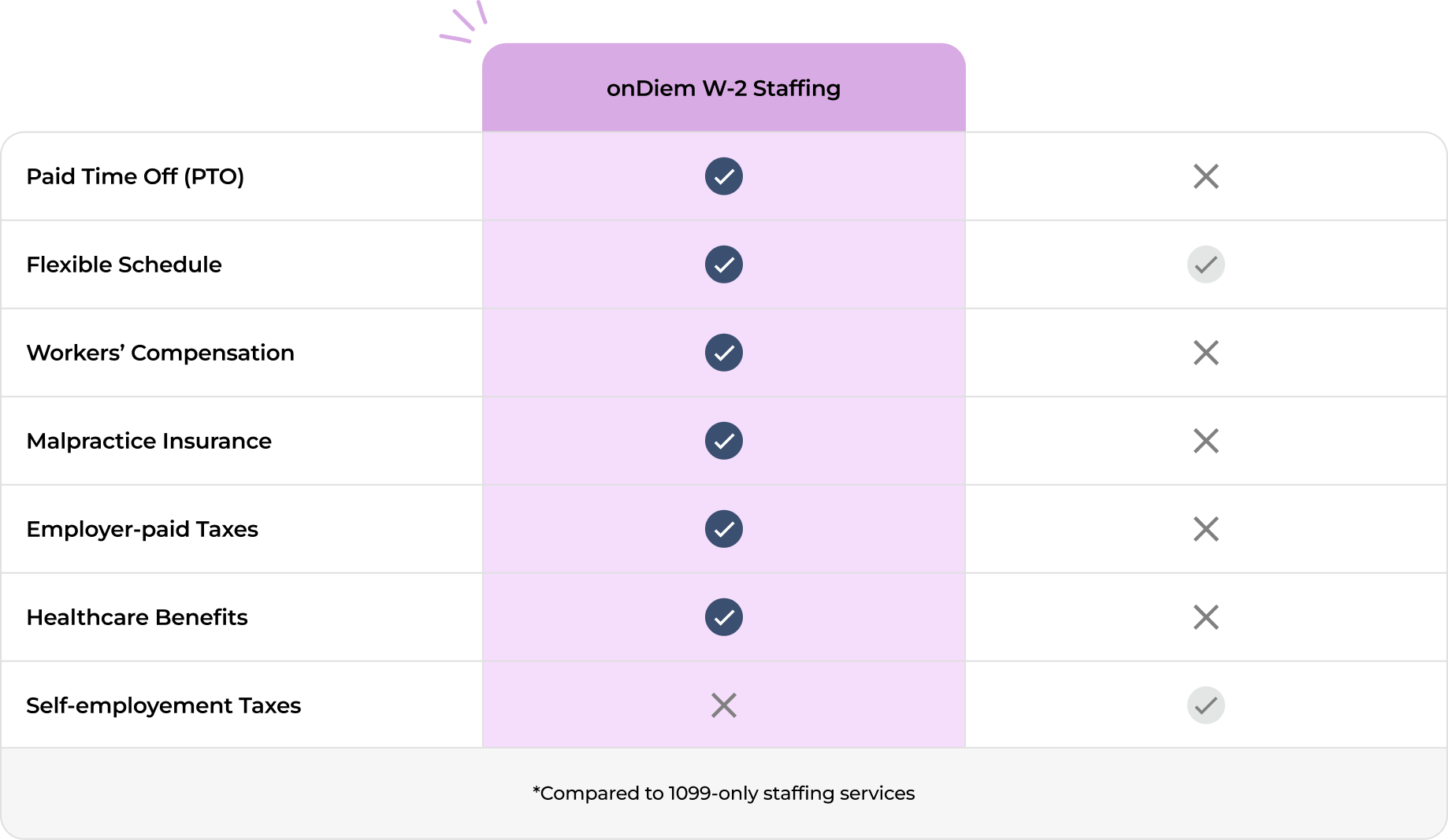 You’ll become a W-2 employee of onDiem, giving you access to